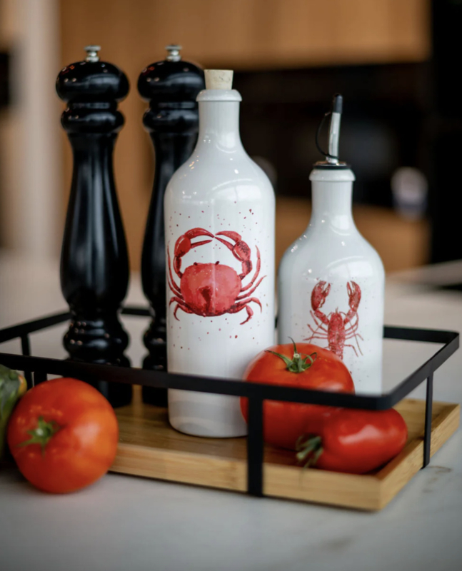 Oliedispenser garnaal roodShrimpOnze keramische oliedispensers zijn ontworpen om oliën, azijn en andere vloeistoffen stijlvol te bewaren én moeiteloos te schenken. Handig in gebruik en mooi om te zien.Elk stuk is voorzien van een uniek 3D-design, met…